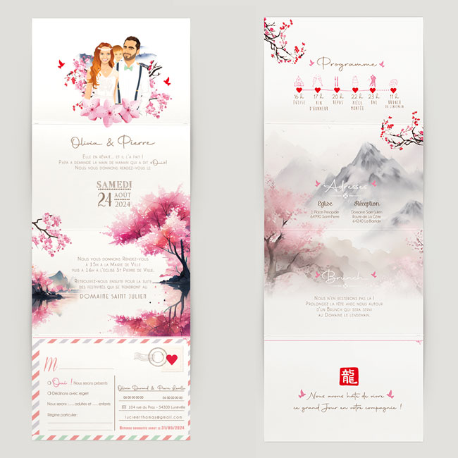 Les faire-part de mariage sont créés et imprimés en France, plus précisément à Strasbourg (Alsace Qualität !). Je collabore avec mon imprimeur numérique CG photogravure depuis plus de 10 ans. Si vous souhaitez faire appel à un imprimeur proche de chez vous, je peux vous fournir le fichier d’impression en PDF HD directement également.